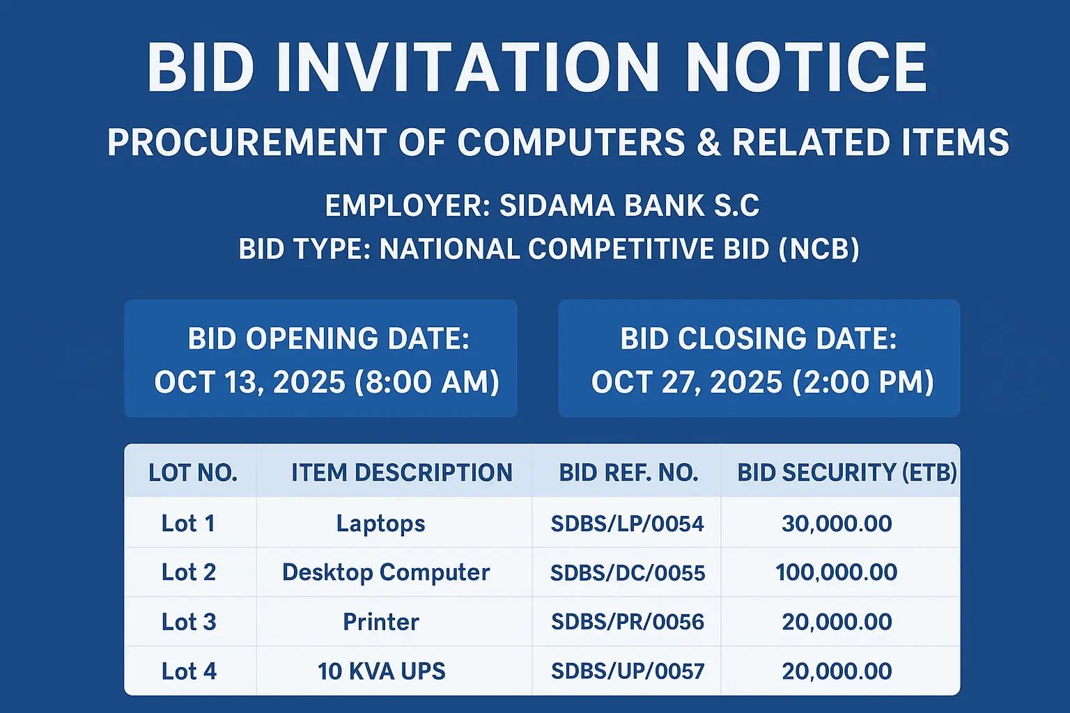 | Lot No. | Item Description | Bid Ref. No | Bid Security (ETB) |